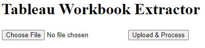 .twbor.twbxfile) using a browse button in the Flask appOnce the file is selected a button can be clicked to execute the processing. Progress is tracked and checked through the web interface and an output log file instead of printed logs on the command line.